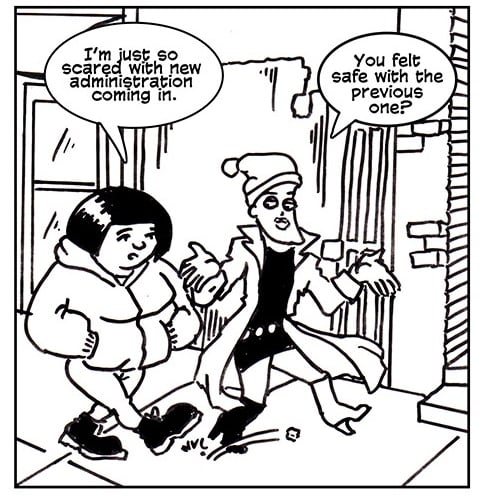 I know its ridiculous, but we live in ridiculous times. And if telling myself that by not dissolving into sadness I am denying a disgusting power-grabber from getting an erection keeps me from succumbing to despair, maybe it will do the same for you.