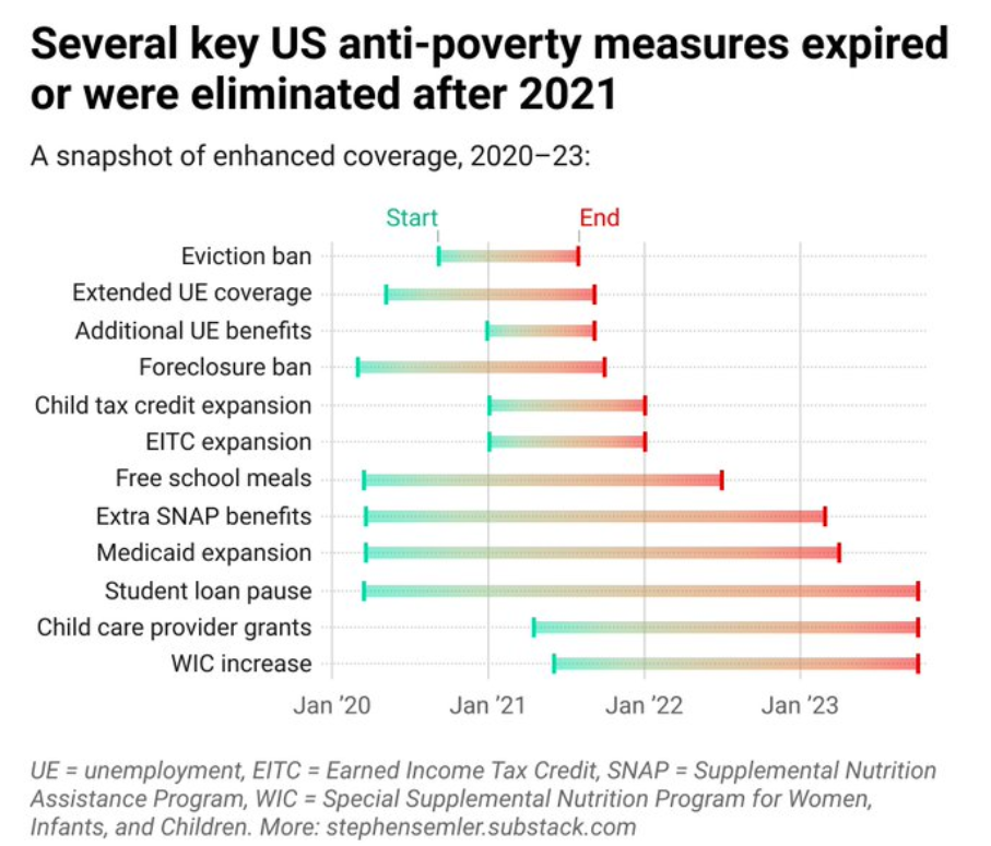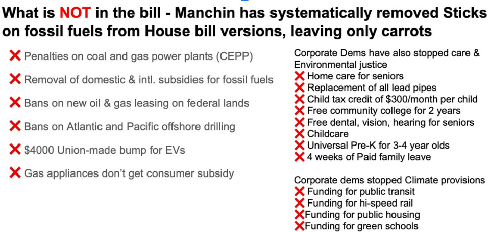 In any case, few of the IRA provisions could have demonstrably eased living costs in time for the 2024 election. The more expansive green and social welfare provisions of the original “Build Back Better” package were removed by the Manchin-Sinema centrist deficit-hawks in the Senate, leaving the Democrats precious little to run on – after dealing with supply chain squeezes, sellers’ inflation, and hiked interest rates, what was there that tangibly and immediately helped people to just get by?