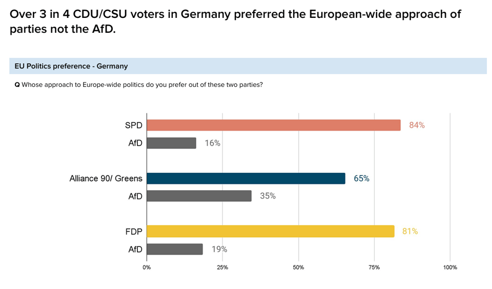 Country-level polling showed centre-right voters were not keen on far-right parties. For example, CDU and CSU voters in Germany vastly preferred any party to the AfD: