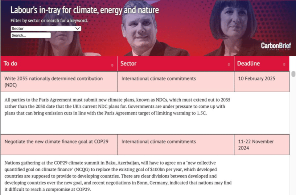 On climate diplomacy and climate finance; Carbon Brief has assembled a to-do list for the new government – and it’s rather big. Meeting its own climate finance target, helping the fraught negotiations on the NCQG (the successor target to the international $100 billion per year goal); and aligning its ETS with Europe’s are just a few.