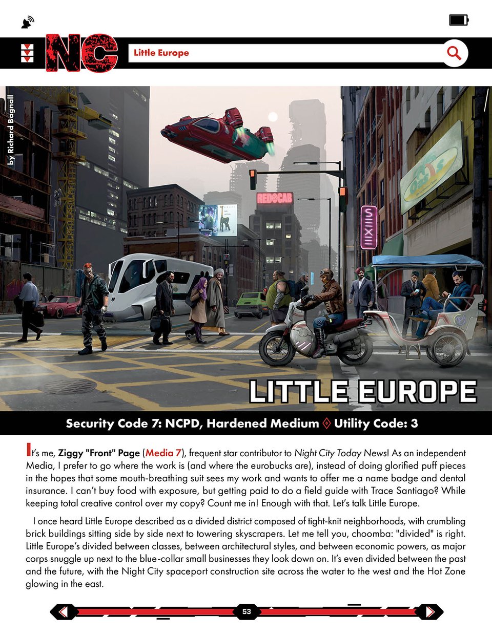 First, R. Talsorian are doing more dev blogs about the upcoming Night City 2045 book. In particular, they showed off a bit about the Little Europe neighbourhood, which is the one I wrote!