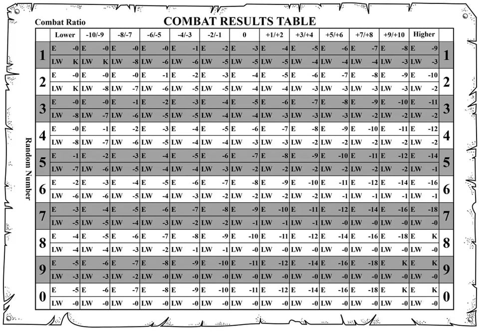 This intersection of charts and solo gaming came to a head last month, as I fell down a rabbit hole of solo gamebooks both traditional and modern. Many of them have some form of combat that boils down to “roll dice for yourself, roll dice for your opponent, and maybe roll dice for damage” for every round of combat. All of them, that is, except for my other childhood gaming love from the 1980s, Lone Wolf.