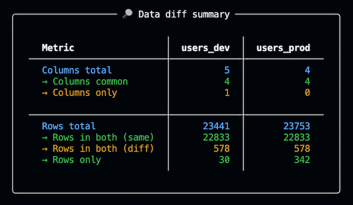 "CLI tool for data diffing between two tables."