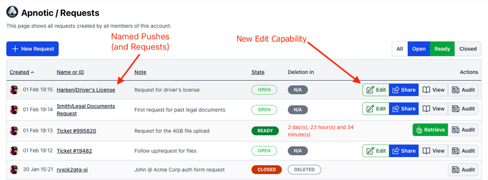 When you send a request to a user, you now have the option to include your user details (name & company) in the created request.
