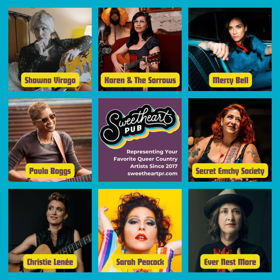 If you're an LGBGTQ artist looking to get some press on your next project - be sure to check out Sweetheart Pub - they've been helping put "queer country" on the map by representing artists like Karen & The Sorrows, Paula Boggs, Shawna Virago, Mercy Bell, Secret Emchy Society, Sarah Peacock and many others - since 2017! Check out their services and rates at www.sweetheartpr.com