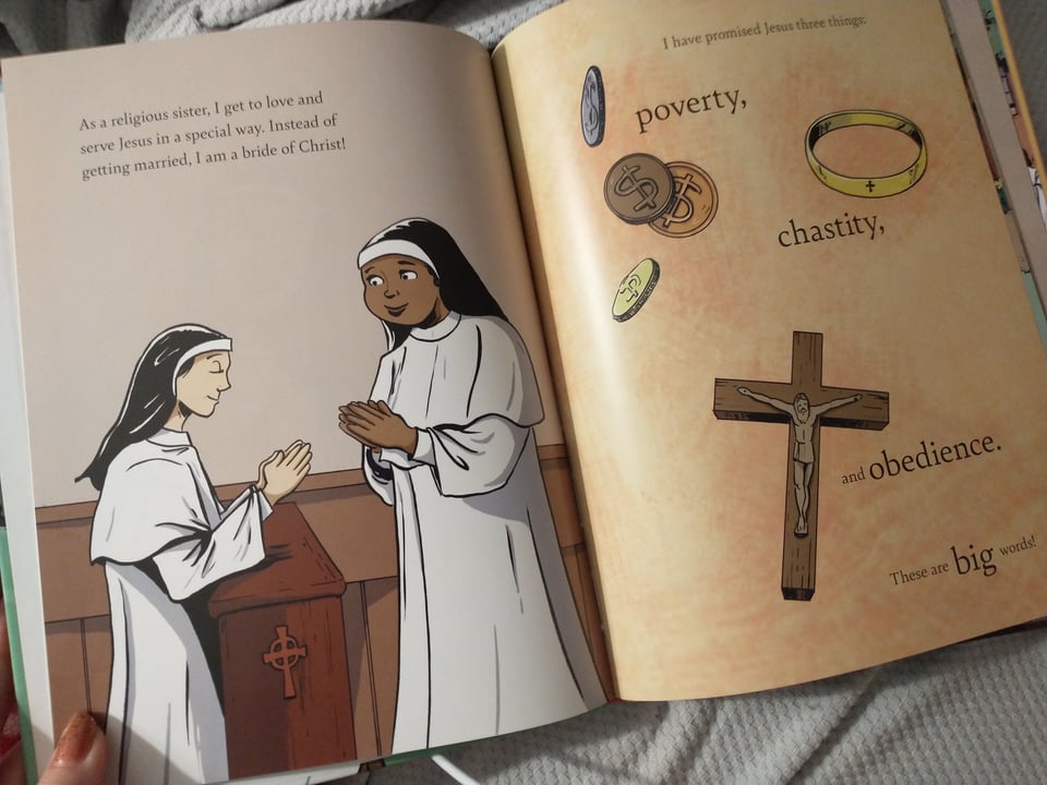 Perhaps the most fun part of receiving my author copies — besides having my name in print — was seeing Christopher Tupa's art in real life. His bright colors, endearing facial expressions, and the addition of some elements I never expected...I'm in awe. I wrote the words, but he made them come alive. Kudos also to Lindsey, our designer at OSV, whose thoughtful layout and text decisions added a whole new dimension.