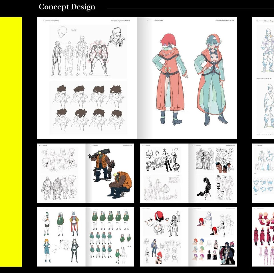 The commentary is rather light on hard details, with nothing in the way of commentary on the show’s writing and storyline which was handled chiefly by Bartosz Sztybor, Jan Bartkowicz, and Łukasz Ludkowski; CD Projekt Red’s own in-house trio of writers. While this is understandable, given that it’s an art book and all, there’s also a conspicuous absence of commentary on part of Yoh Yoshinari and Masanobu Nomura, the respective character designer and art director of Cyberpunk: Edgerunners, whose insights would've been much appreciated — especially into the what went into the initial ideation and iteration of the anime’s character and environment designs.