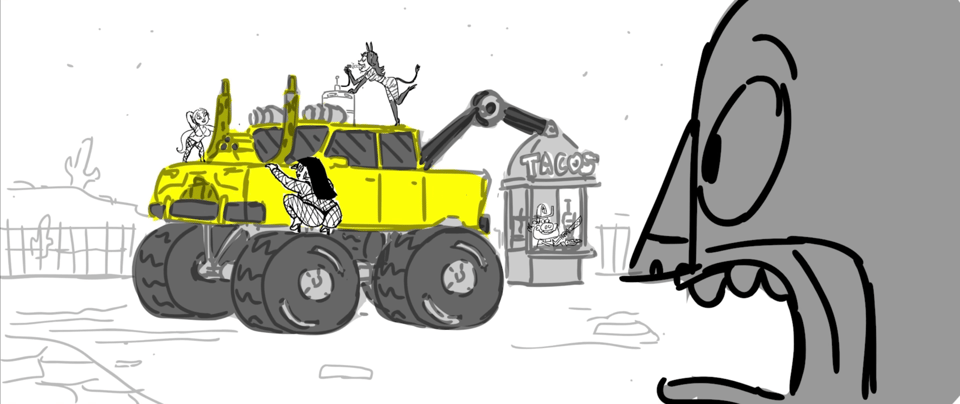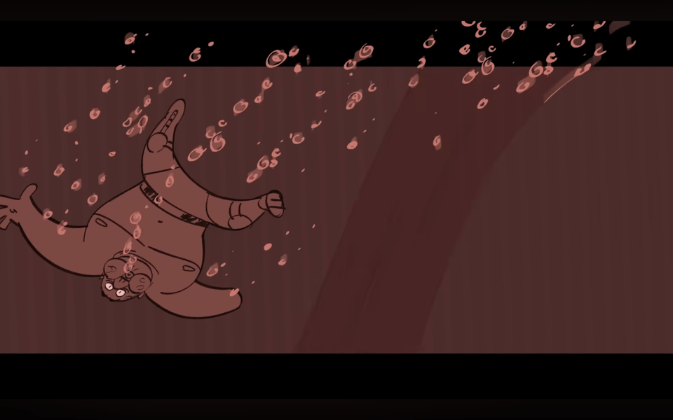 Need to emphasize action? Have the characters literally break out of the screen by moving in front of the letterbox. Want to drill down on movement? Don't just move the scene! Move the letterbox too. It's a fun, fascinating choice that more animators should lean on, and I love that Gutierrez so regularly does so.