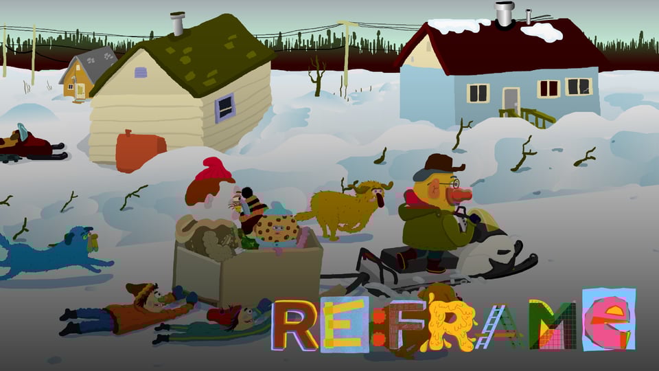 The jabs at Canada as an entity aren't exactly subtle; the whole impetus in the documentary for Seth to record Peter's stories is that they've been given a grant to do it, but every subsequent mention of this includes the person that gave said grant questioning what, exactly, the half-brothers have spent the money on. In one particularly memorable scene, the action of a story is interrupted to show Seth showing the animation to this government official, who is asking why the scene is so very long and what that adds to… well, anything. Meanwhile, a literal pile of money burns behind Seth as he goes on to explain.