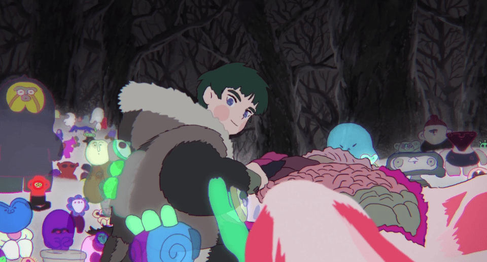 Similarly lush is the score from Kenji Kawai (Ghost in the Shell), who rises to meet Oshiyama's occasional invocations of Miyazaki. Speaking of which: Oshiyama's portrayal of humans reckoning with their part in violence against the natural world is counterbalanced with respect towards the spirits which govern it, which appear in forms not unlike those in Princess Mononoke, with innocent and clumsy demeanors.