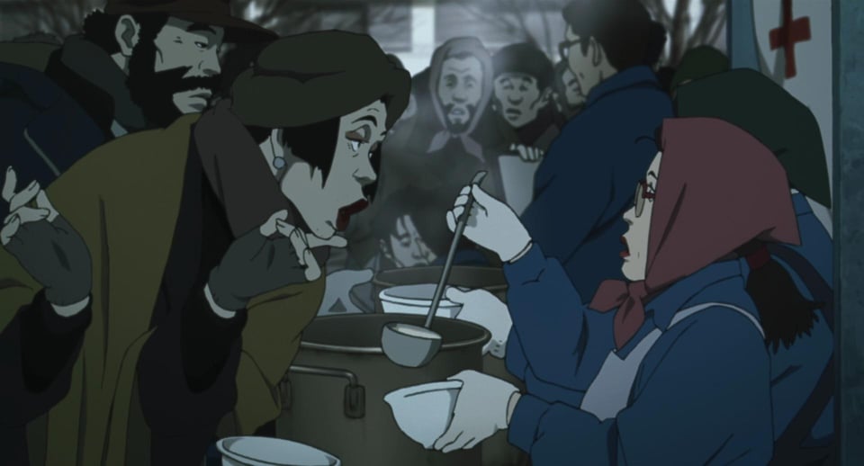 Which makes the serendipity, the Christmas spirit if you will, of Tokyo Godfathers truly shine through. Despite the setting, there's relatively little in the way of traditional holiday flair. The opening happens to include a nativity play followed by a sermon, but once that's over it's just… Christmas time. It is that time of year, and nothing more. With the core plot being the return of the baby, Tokyo Godfathers leans on that initial kindness and sentimentality to spread more of the same instead without ever absolving anyone.