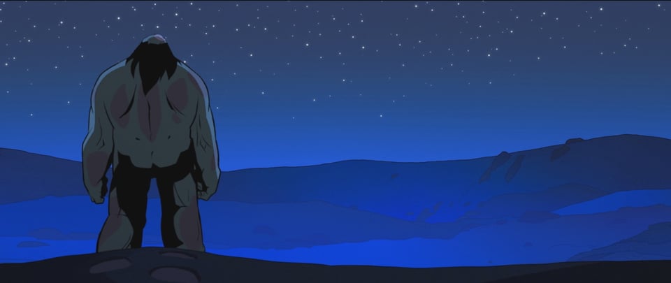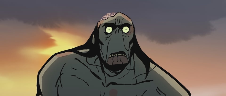 And while there has been a sweetness in seeing the unlikely combo of neanderthal man and dinosaur grow closer, it's more surprising still that the show feels at its most sensitive in an even more outrageous premise – filtering the loss of that relationship through the eyes of a zombified husk. Spear clawing back his humanity without even realizing – through one act of charity begetting another, just as violence in the show begets even bloodier violence – is why this season works so well. As rendered by its artists it's a literal land of contrasts, explored with a boldness and a purposeful embrace of visual storytelling that I hope echoes throughout other animated projects.