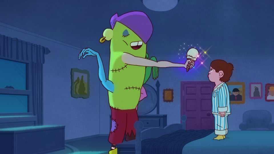 I was the last to choose a character design from our initial exquisite corpse drawings, so I was left with the weird multi-armed one for the start of my segment [laughs]. I decided to have Somvilay storyboard and design that part to make sure it all started off funny. He's a good old friend, and one of the best filmmakers in the world, so any time I get to work with him is a joy. It was fun discussing the backstory of the family and hinting at fuller narratives in the props and BG details.