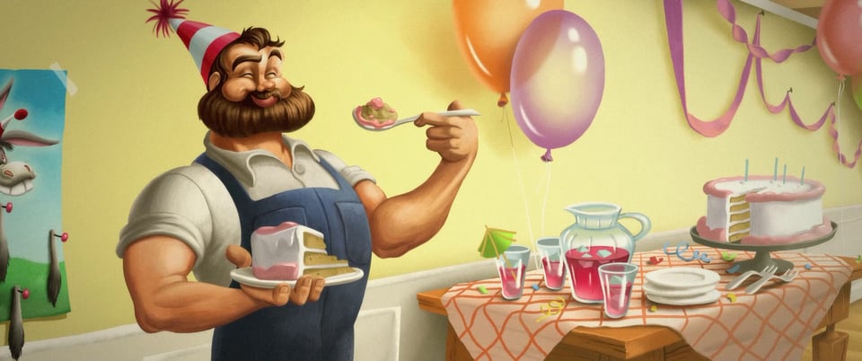 This brings me onto Farmer Jim. The mere sight of this guy, the adoptive father of Porky Pig and Daffy Duck in new feature The Day the Earth Blew Up, had the Bonlieu audience at last year's Annecy Festival in hysterics. In a world of stretchy and (relatively) simple cartoon characters, here comes an immensely detailed painting with absolutely no flexibility, as though he's being held in place by all the paint that makes up his likeness. Daffy and Porky bounce around the frame, while Farmer Jim barely moves at all – when he does, he either hops through the frame with no limb movement or walk animation, or his hands are simply moved from one side of the frame to the other.
