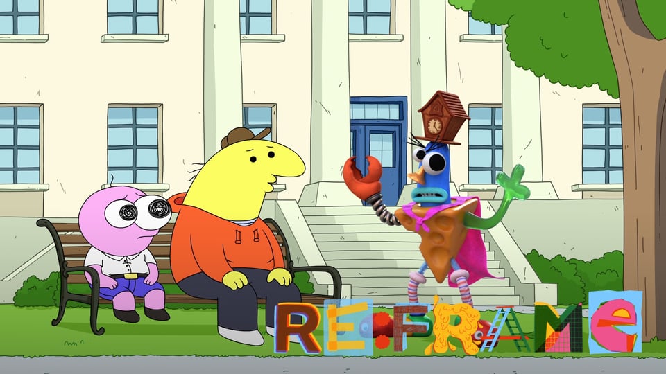 The creative team credited is the same as with any other episode, with episode director David Hootselle as well as storyboard artist Hannah Daigle, background supervisor Greg Bartlett, with credit for "specialty animation, compositing and VFX" going to Hadel, co-creator Michael Cusack, and producing partner Aron Fromm's recently announced Zam Studios (who also handles the live-action photography of people composited into the show, with direction from Fromm). The difference in direction is striking enough and committed to that one style that it wouldn't have been a huge surprise if they'd flown a guest in, but they hadn't.