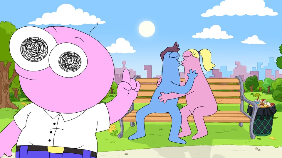 But still, the question of what Smiling Friends even is plays into a lot of the humor in two out of three of these first episodes, produced as ever by Studio Yotta and Princess Bento Studios (with animation services from Saerom Production). The standout to viewers will likely be episode two, titled "Le Voyage Incroyable de Monsieur Grenouille," boasting the return of the fan-favorite amphibian psychopath, Mr. Frog. The ironic tone of the French title is a little heads up of what might be the best gag of the episode: that the most violent character gets the episode with the most visually polished (in the traditional sense) of the entire series.