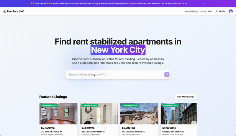Max here. First, I want to thank all of you for the support and kind messages I’ve been getting. I built RentSure to help folks like myself find rent-stabilized units in NYC, and it’s so heartwarming to get messages from others who are finding it useful in their apartment search.