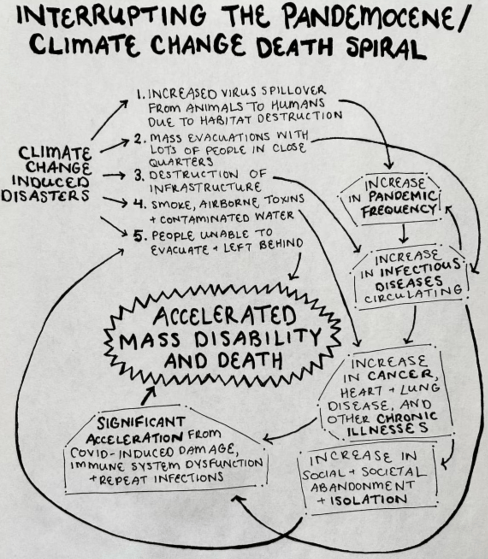 Interrupting the Pandemocene/Climate Change Death Spiral (image by @slightlypersimmon on IG)