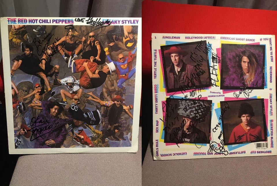 As for research of material things – I found a fully signed copy of “Freaky Styley” vinyl on eBay once. The price was $250 & it originally belonged to late Art Boerke, the club promoter. AK, Flea, Cliff & Hillel signed it in November 1985 & after Art died someone was selling his property. I bought a record and was happy with it. Later George Clinton, Maceo Parker & Bennie Cowan added their signatures to this record, George was impressed & gave me a hug. That was great.