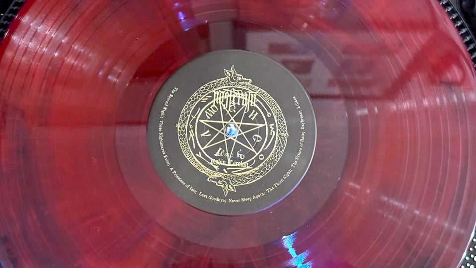 We are listening to the soundtrack to Nosferatu, which version I do not know. It is by someone named Robin Carolan, of whom I have not heard, whose gender I cannot say. Here, we’ll do a rare the-photo-of-vinyl-in-the-GMHHAY-is-the-record-we’re-discussing edition here, cus it’s a pretty dope-looking record: