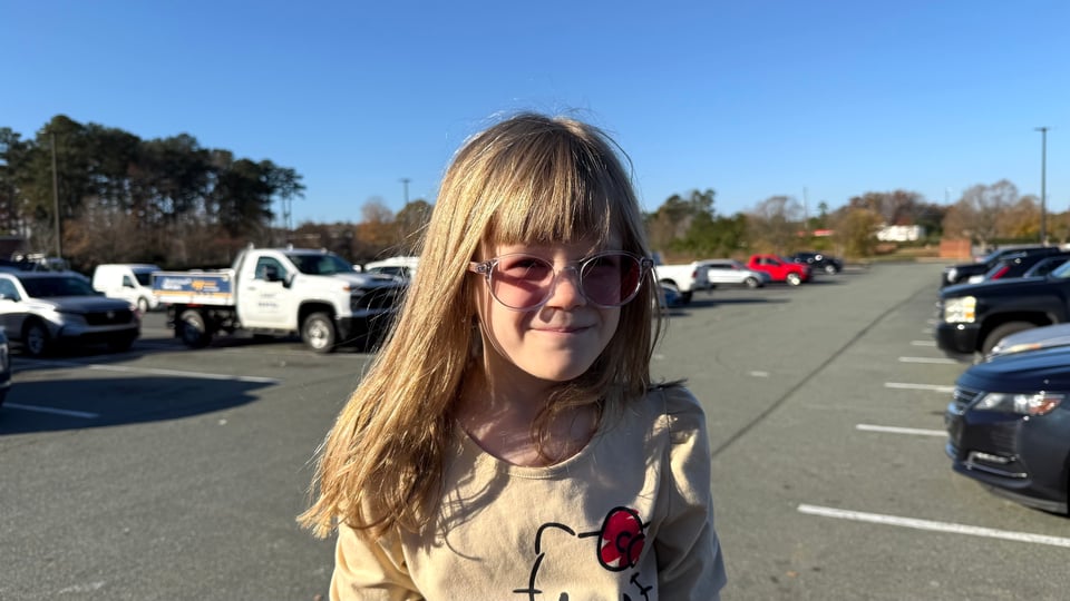 She does have a cute bow in her hair today, though, thanks to Emma.