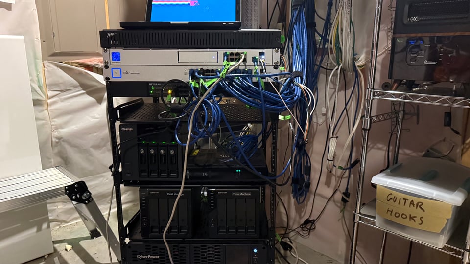 Sunday morning I did the wiring to my Mother In Law’s house, our ADU. I had run the CAT-6 cable to it from our server room, and buried it, but just left it long and unterminated in her bushes. I found a way to get that cable into the crawlspace and then up into her living room without making any new holes in her walls. I deserve an award for this because I fucking hate running cable in walls. Got her on the master property-wide network. She is unimpressed. I used an old Unifi AP-PRO which only runs Wifi 5. She is getting 400 up and down. She gets 500 up and down from her AT&T router. I am going to need to beat this. I have a Wifi 6 AP coming for her now.