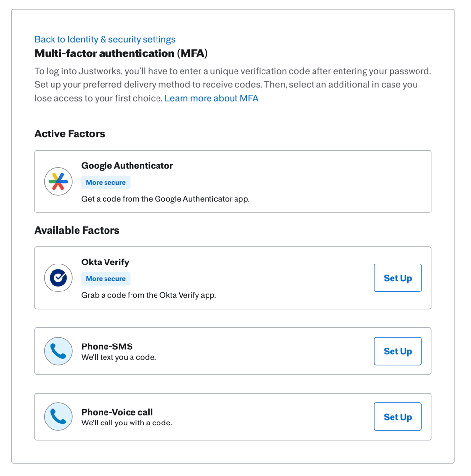 Except! Get this: Justworks, the HR software we use at work that I generally recommend to people, does not let you change 2FA authenticator apps! I seriously feel like I am taking crazy pills! There’s just no option for it!