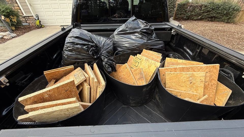 Decently productive weekend, considering I accidentally ordered more 3/4” pressure-treated outdoor plywood (which I used in the Storage Facility Coming Soon billboard) instead of OSB subfloor, so I only had six pieces of flooring left to install. But I installed them all, good for me. Also figured out what that plumbing vent was for, in a part of the house that has absolutely no plumbing. It was for the ice maker in the fridge. Gonna need to re-route that a bit, it is sitting in the middle of the drum booth. I do not anticipate using the drum booth very often, I suspect I’ll mainly record drums in the big live room, but it is nice to have a drum booth option. So I demo’d 10 bays of subfloor and old insulation, cleaned em out, took photos and documented, added the Safe N Sound, and cut all the new subfloor and tacked each piece in with only a couple of screws, no Avantech seal, so I could pull ‘em back up and show the plumber the situation. Shouldn’t be hard, except it might mean another roof penetration, always a drag, and I don’t know exactly where the solar panels are, so bit of a crap shoot still. Unless a plumbing vent can angle back on itself? I doubt it. But who knows. Maybe.