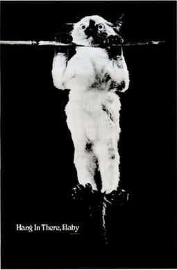 It is hard to find the original hang in there poster on the internet these days. Lotta imitators. Wikipedia tells me the original was made by an LA celebrity photographer named Victor Baldwin. I am not sure, actually, that the Argosy version my mom had was the original. But my memory has now merged them. Here is Baldwin’s original: