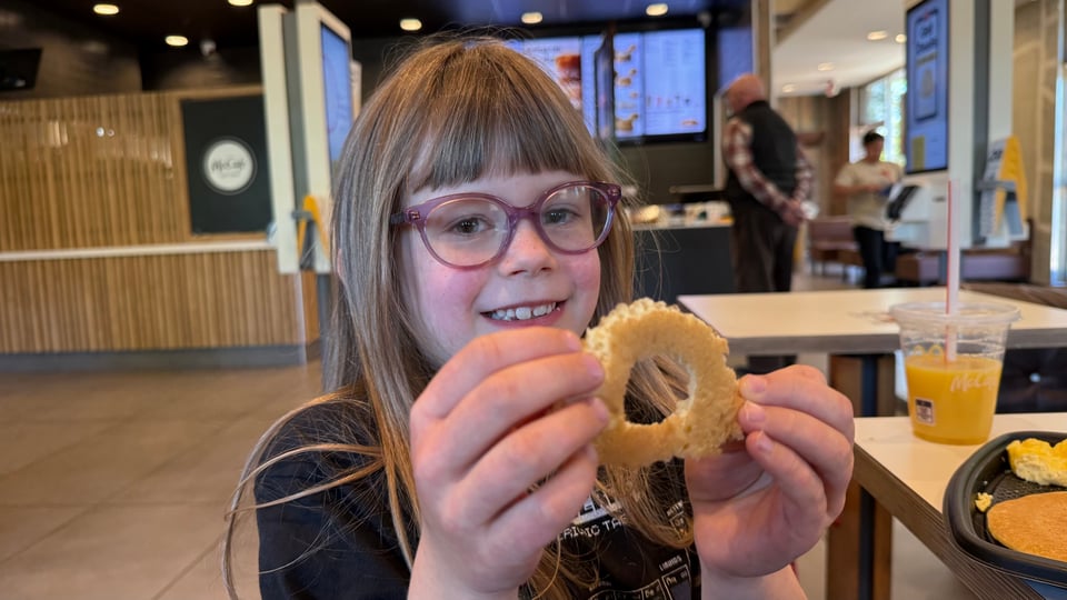 She was up. She wanted breakfast. I took her to breakfast. Now it is 9:48 and my meetings start in 12 minutes and I will never finish this. One more day until we are fully back on schedule, folks. Daily writing is a difficult business.