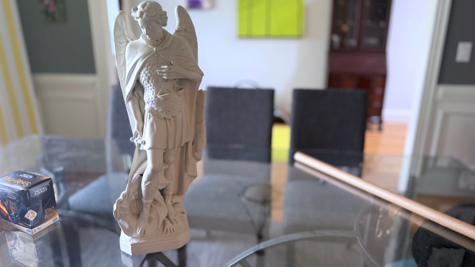 The St George and the Dragon state has made it home safely. I had this idea, now, that I am going to repair it even better than I did when I was 20 or whatever, as a testament to how much I have learned when I was an adult. And I am going to re-paint it because this white paint is inauthentic and all items from Grotesques the Gargoyle Store on Newbury in the 90’s painted everything in a sort-of stone color so now I am going to do that. Full restoration.