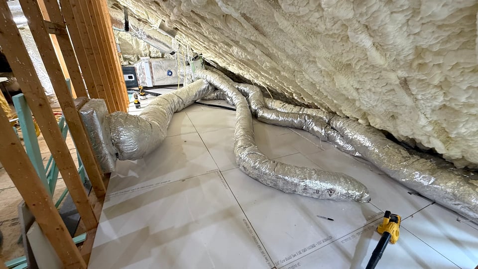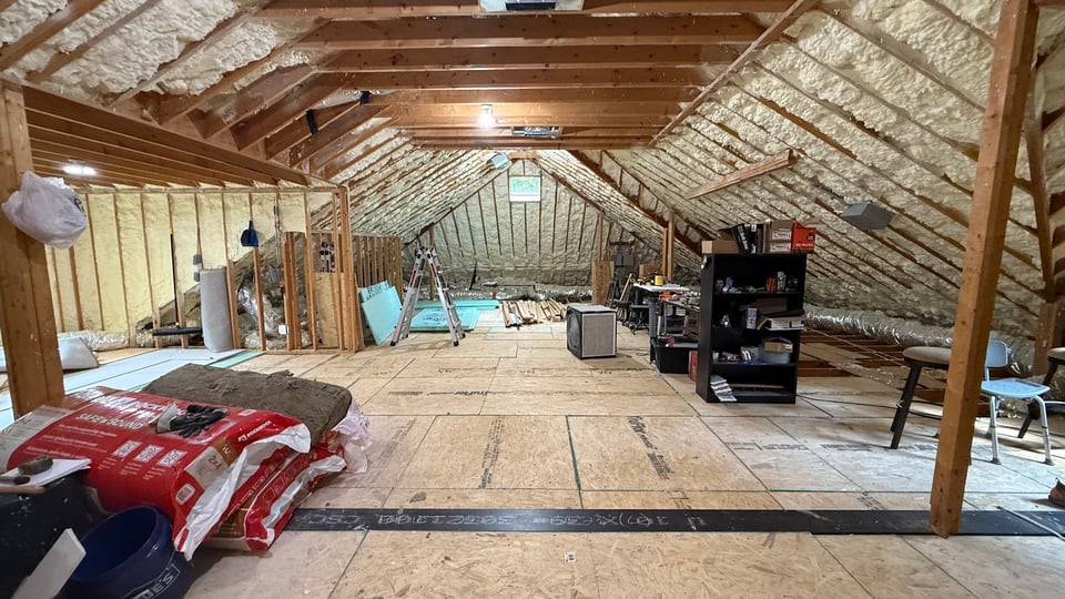 Got all the foam on the floor done in the NW corner, then the first layer of sheetrock, and caulked that, and got about half the second floor layer of sheetrock done in that area. I am focused on that area because I need the HVAC company to re-route a bunch of ducts so I can build walls, and it will take a while to schedule them, so I want that section ready for them as soon as possible. I am almost there. I mean, I still have half a layer of sheetrock and two layers of OSB, but… I dunno. It felt like progress!