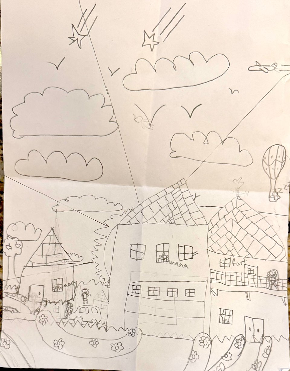 Pretty decent weekend from a Jane POV. We had one giant fit that lasted about two hours that sucked, on Saturday, but mostly things were pleasant. We did a playground playdate with the girl we met a year ago at the Bojangles, that was fun. We see her pretty much every weekend on Saturdays at breakfast but had never seen her outside of Bojangles. Good to see them get along on the playground. On Sunday a couple of her school friends came over for a playdate. She drew a really cute picture this weekend.