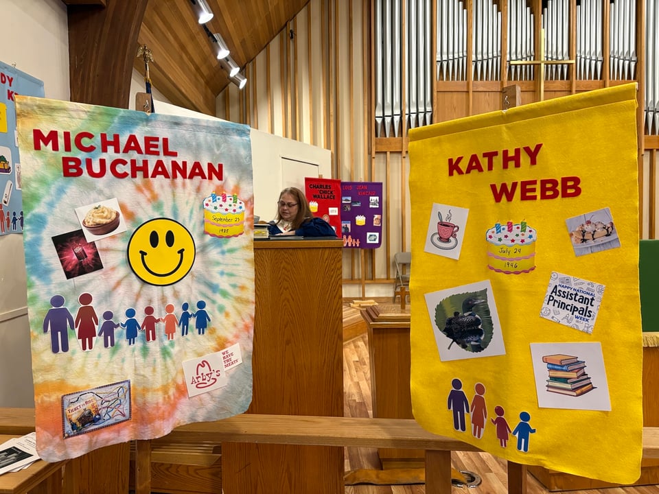They displayed my mom and cousin’s banners at the church in Fairbanks. I wrote a month or two ago about how my sister, aunt and I did a conference call with a bunch of kids at the church who do a sort of remembrance project and make banners for all the church members who pass away. They showed them all in the church this weekend for, I believe, all saints day? Not sure. Anyway Val said she knew like 40% of the people listed on banners and it was a real emotional experience. My cousin Mickey loved tie die I love that his was the only tie die banner that is a really great touch.