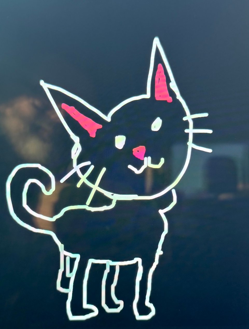 Good morning good morning. Really gotta fix the numbering on these issues, but not this morning. Not feeling up to it. Just back from taking Jane to school she was lovely. We took a break from our Ford Tetris rip-off game and she did some drawing. She asked me what I wanted her to draw. I said a kitty. Man that is a cute kitty.