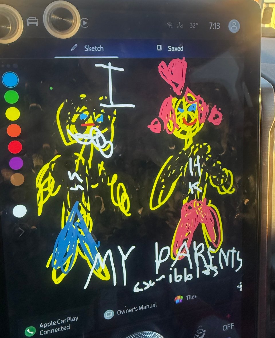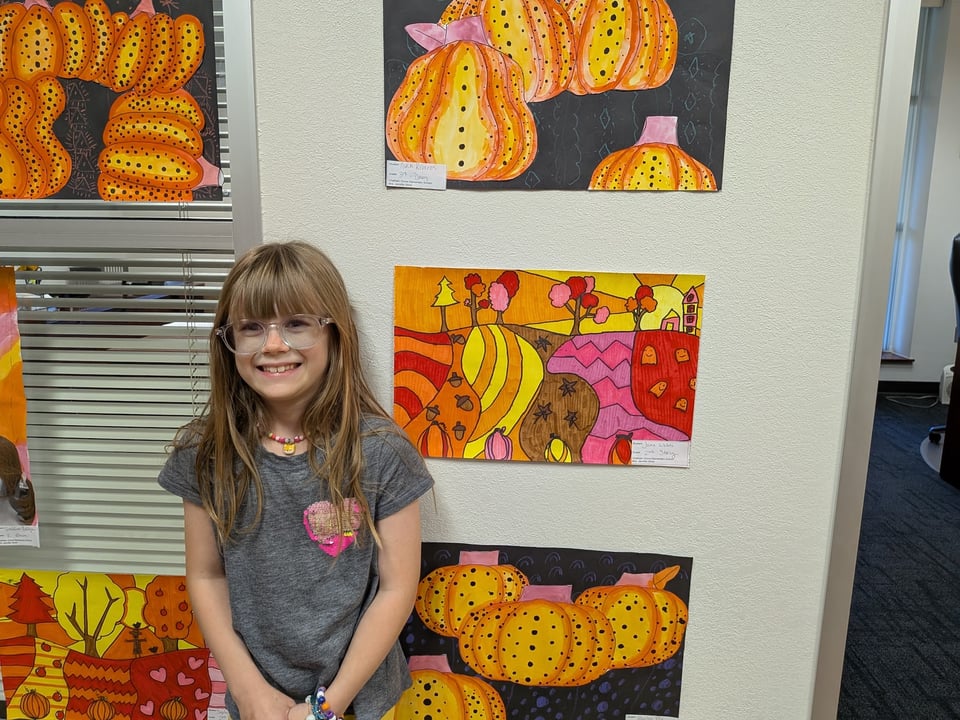 Jane had her art displayed at the nearby credit union. Second time her art has been chosen by her art teacher for public display. I am a very proud parent. Oh that reminds me I gotta put a pic of the scribble parent portrait in here today for Suzy. Oh that reminds me I gotta take a screenshot of the Buttondown text editing interface for Ben in the WITI slack. I am very excited she is back on doing sketches in the morning instead of playing fake-tetris.