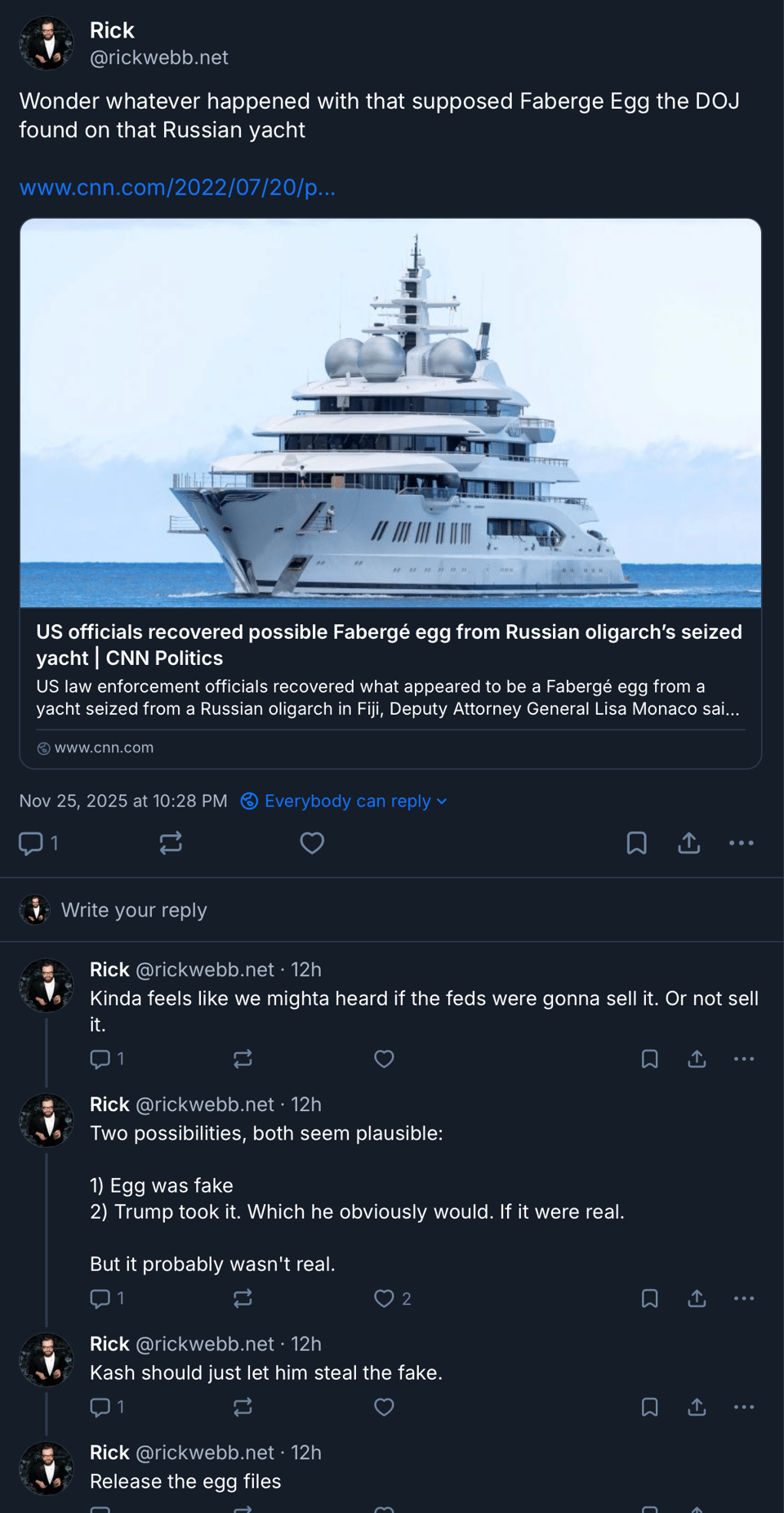 Wrote some very important Fabergé Egg discourse on Bluesky last night that I think it is important you all see: