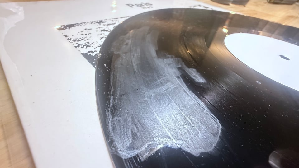A few weeks ago I received a Paris 1942 record in the mail — Moe Tucker’s 1992 collaboration with Sun City Girls, recently re-released on the excellent Superior Viaduct. Great record. Only problem is, it came in one of those sleeves with the adjesive closing the sleeve. I fucking hate those. Because they always risk getting stuck to the sleeve and messing up the finish. Except this time it got stuck to the actual record, got adhesive all over the record. And nothing would get this adhesive off.