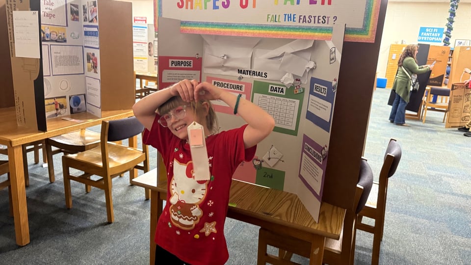 Last night after Gymanastics we drove 40 minutes west to Siler City to go to the school district Science Fair awards and finals, where Jane received an honorable mention in the county for her science fair entry. Her friend won first place for all the K-3 students in the district, and our friend’s kid — who Jane knew as a baby, whose mom was in our birthing class, also won Honorable Mention. The awards for K-3 were given out first, so this means we knew three of the first awards given out I felt like a real member of the community, yo.