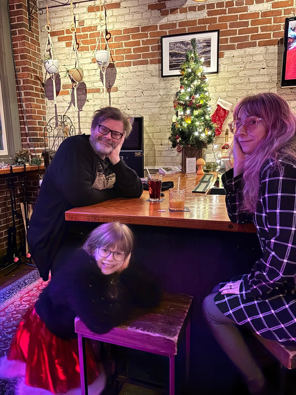 We are just returned from the local breakfast place. I was introduced to everything bagles this week. Always thought that “everything” was different at different places. Didn’t realize it was a consitent, specific combination of delicious things. I am now a fan. Delicious. Also learned that mincemeat is not meat. Fifty three years old, still learning basic-ass shit. We had bagels. Jane had a babka. She loves their babkas. This is not new information to long-time readers. We are on a good babka run this week. And they were open for Christmas. My wife Emma and our friends Nick, Megan, Henry and Jared all went with us to the breakfast place on Christmas day. It was lovely.