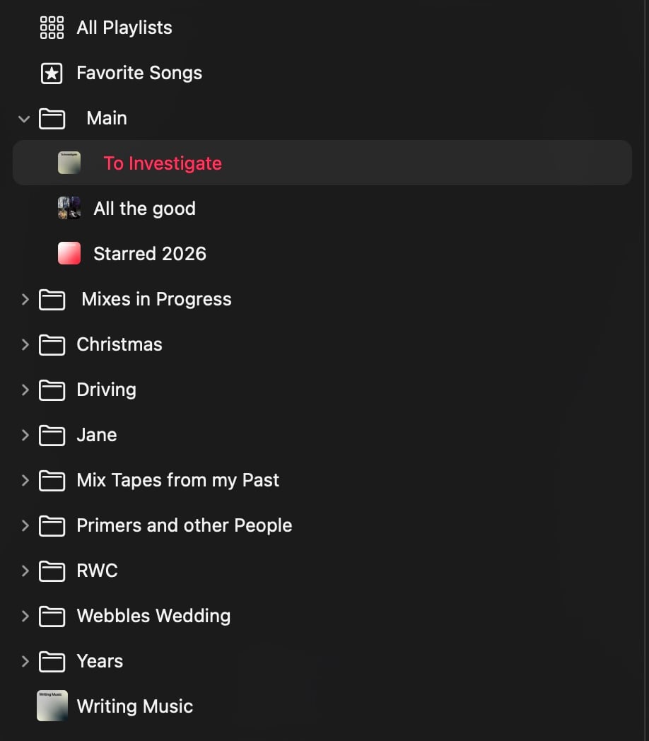 YouTube Music does not have a Mac App, but I put the website into one of those “Share to Dock” Safari Widgets that make a website into their own app that I love so much, and that was fine. What killed it for me in the end, though, was that YouTube did not have folders for playlists. And I have hundreds of playlists. So that was a non-starter. Apple Music does have folders. You can’t sort things in any way other than alphabetically, which is a bummer, but I can make that work. The UX is wonky but you get used to its quirks. It does everything I need it to do. I will manage.