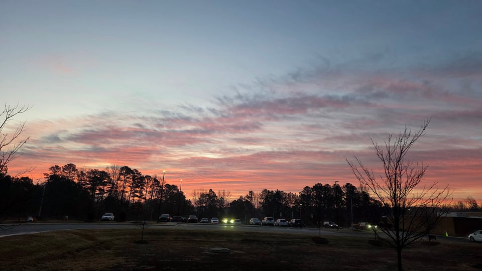 Good morning good morning. Hello. Hi. Finally writing one of these on time for the first time in, oh, three weeks. Very exciting. Jane is recovered. Mostly. 90%. Took her to school this morning. The sunrise was overwhelming. Lotta moms and dads stopping and taking pictures as we drove through American Suburban Utopia. All very quaint. I bet none of them spend their entire day on the internet.