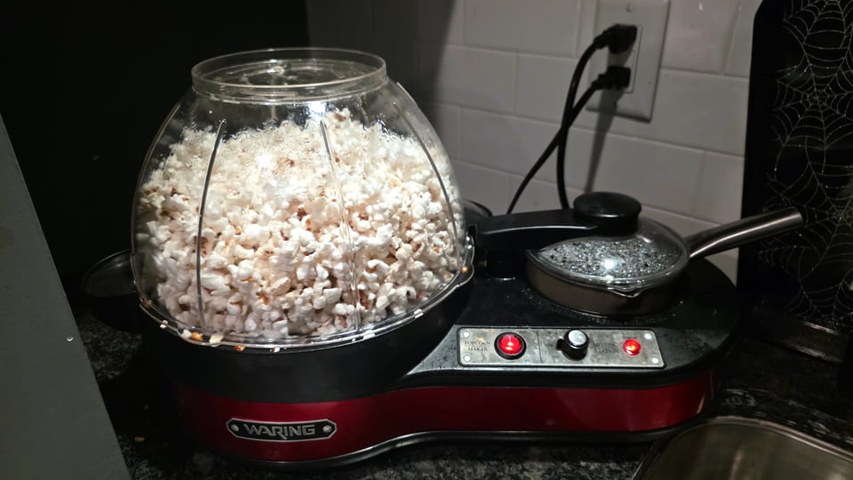 Look at this fucking awesome popcorn popper have I told you recently how much I love our popcorn popper? It rules.