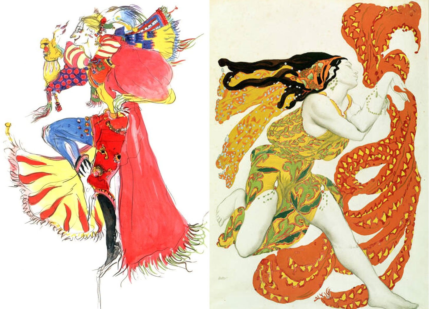 My next mental association with dance is the Ballets Russes, specifically their costumes designed by the Russian painter Léon Bakst. One of my single biggest influences is the Final Fantasy series of JRPGs. The series’s main concept artist, Yoshitaka Amano, was himself inspired by Bakst’s colorful costume designs.