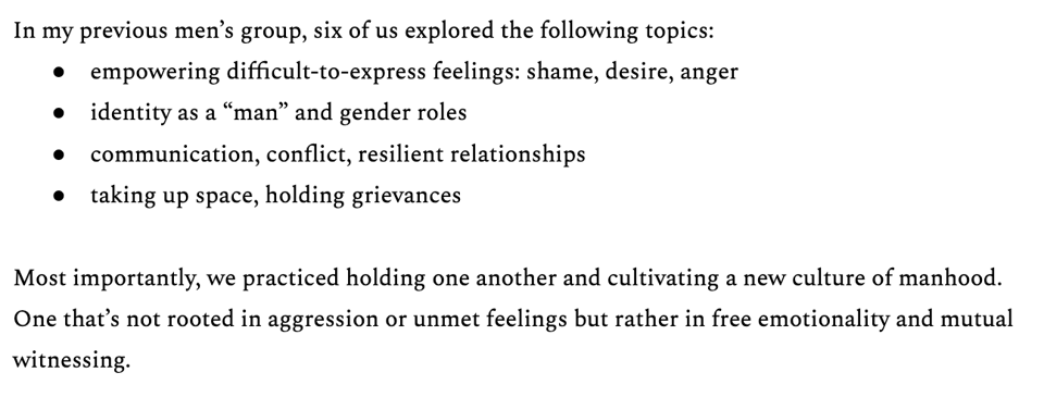 If you're reading this thinking "I wish I could help Rishi" there is one particular thing I'd love for you to do: help me get the word out about the next round of my men's group!