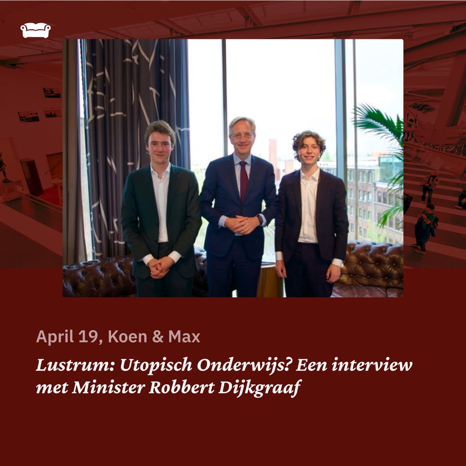 Minister of Education Robbert Dijkgraaf joined Room for Discussion for a very special lustrum interview on De Brug. During an hour and a half, the minister shared with us his vision on Utopian Education, and how far The Netherlands actually was in achieving this state of utopia. The interview was divided in 4 sections: Mental Health, Financial Struggles, Internationalisation, and Knowledge Economy. Across all 4, there is room for improvement before we reach utopia.