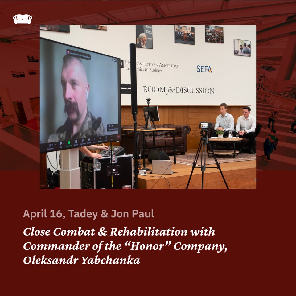 The next week on April 16th, we had the privilege of speaking with Oleksandr Yabchanka, Commander of the "Honor" Company. Formerly a doctor, Oleksandr, like Yehor, was deeply involved in the 2014 Revolution of Dignity and witnessed Russia's invasion of Ukraine in the same year. From defending Kyiv in the initial days of the full-scale invasion in 2022 to later becoming a soldier, his journey reflects the resilience and determination of the Ukrainian people.