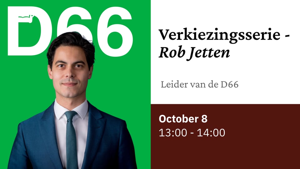 As always at Room for Discussion, students will have the opportunity to ask their questions directly during the conversation – and in this series, we’re giving that extra attention. So this is your chance to bring your political questions forward in the run-up to the elections, live on campus. Please also note that all interviews in this series will be in Dutch!