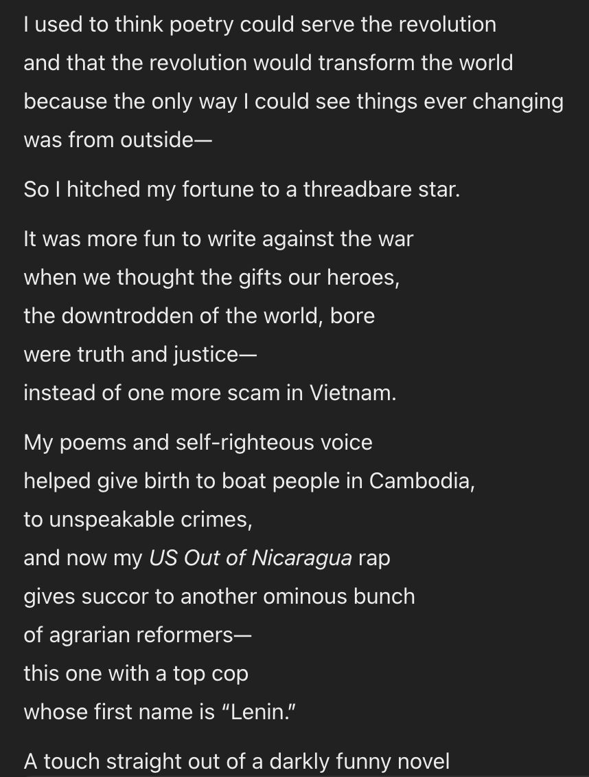 PS: I love this one by Dlugos especially: It used to be more fun to be a poet- “It used to be more fun when other places seemed better, more noble than America— even the obsessive, money-grubbing swamp of sanctimony that’s America these days!”