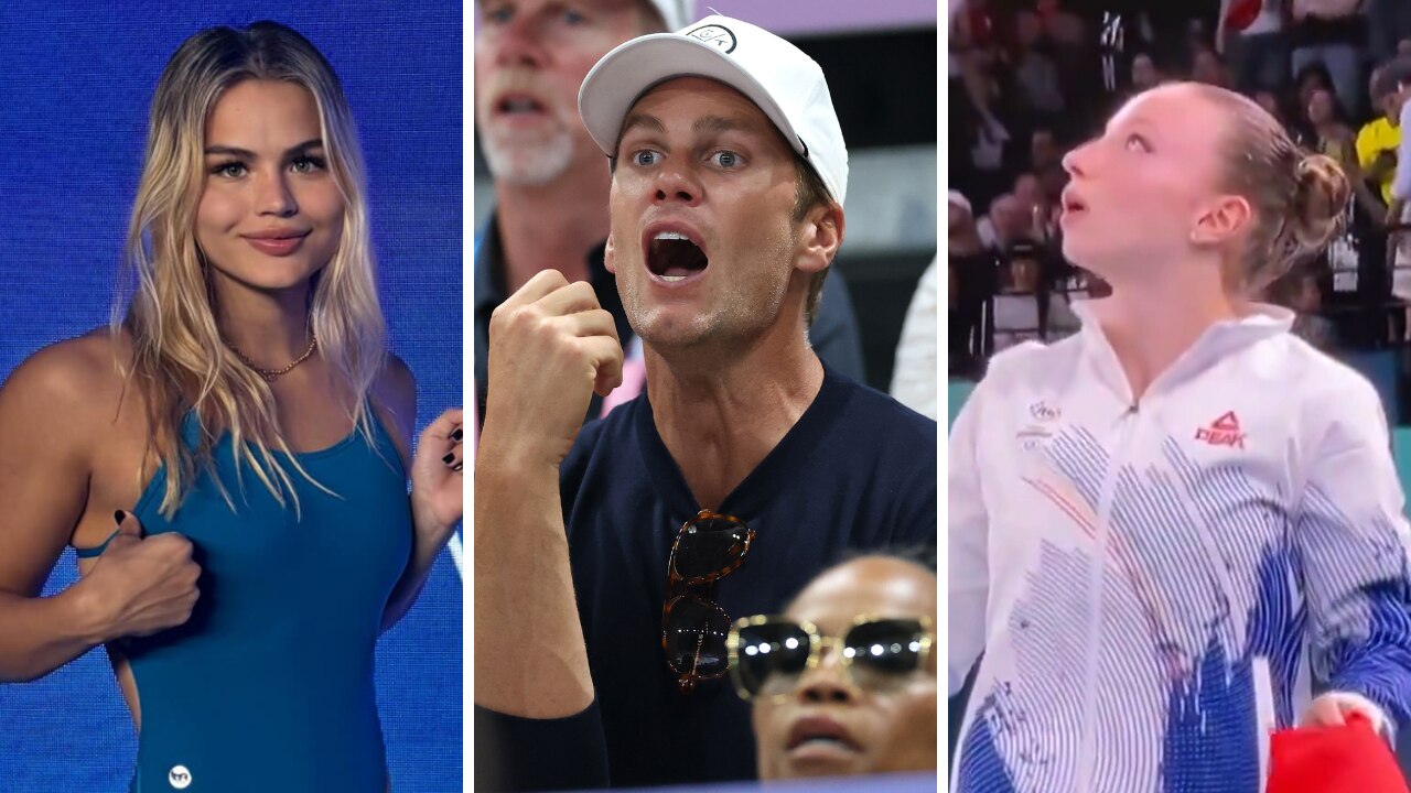 Description: Tom Brady watches Simone Biles in action, a Paraguay swimmer is asked to leave the village over a Di...